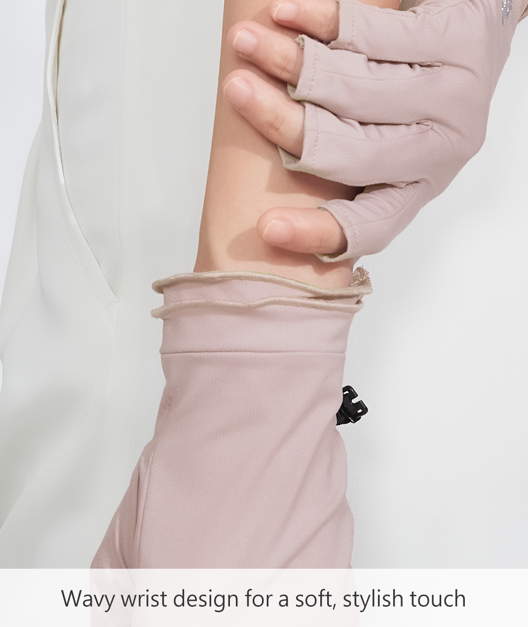 Fingerless design effectively blocks UV rays, keeping your hands fair while curing gel nails. The wavy wrist detail adds elegance, making it both stylish and protective for daily wear. Comfortable and practical, it makes hand care effortless.