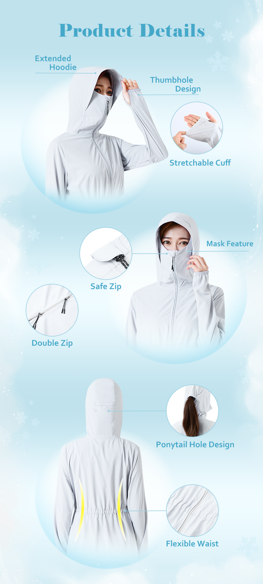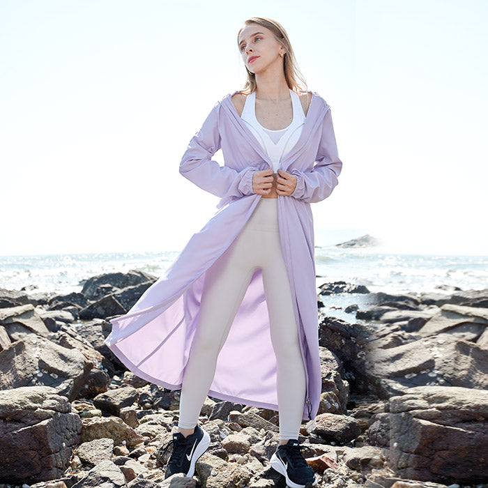 Our Suptex Long Hooded Jacket is ARPANSA certified with a UPF50+ rating, offering the highest level of sun protection by blocking both UVA and UVB rays. It features cooling sensation and moisture-wicking for optimal comfort. With a super cooling 0.343 Q-max coolness index and ultra-thin fabric of just 0.07mm, it ensures you stay cool and dry. The jacket also includes an extended hooded face mask for extra coverage and a flexible waist. Stay protected, cool, and stylish all day long!