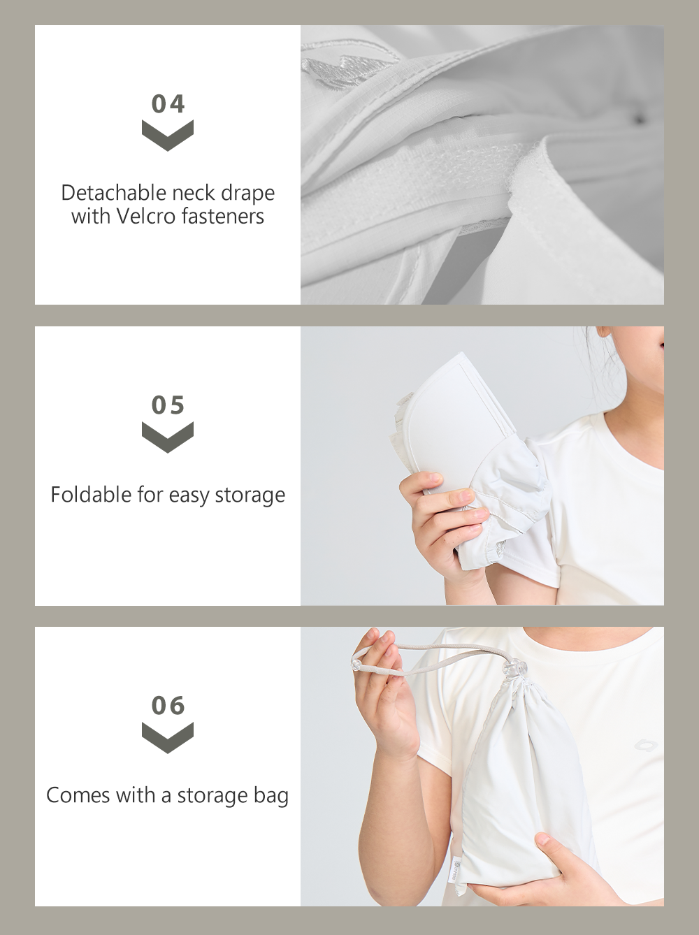• Detachable neck drape with Velcro fasteners