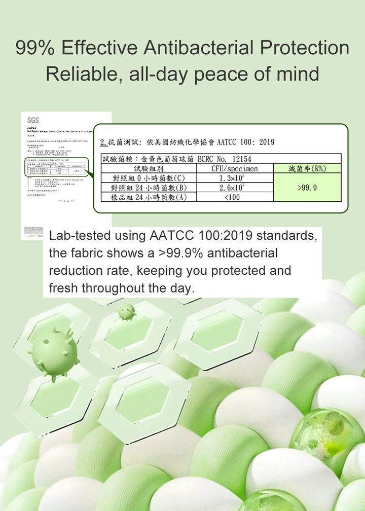 Our Apex-Cool+ collection offers over 99.9% antibacterial protection. Using exclusive technology, it features radiative cooling fabric that absorbs and dissipates heat for lasting cooling and sun protection. Free from harmful chemicals, it withstands washing without losing effectiveness. Durable, soft, and SGS certified, it delivers instant cooling with a 0.326 Q-max index and superior moisture-wicking. Resistant to pilling and color fading.