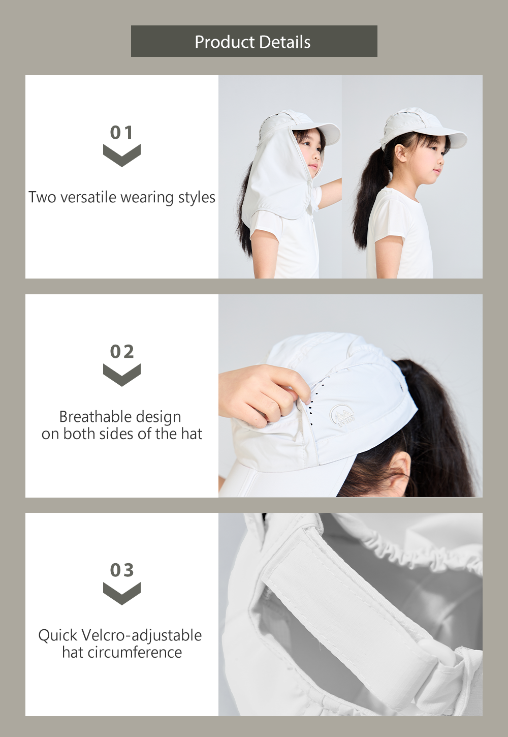 Designed with UPF50+ sun protection and breathable side panels for optimal heat dissipation, this cap ensures your little one stays cool and shielded from the sun. Weighing less than 70g, it's ideal for daily wear and school, combining practical features with a trendy design. Keep your loved one protected and stylish with the Suptex Cap With Hat Drape.