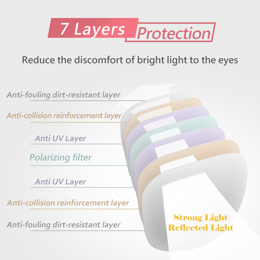 • 7 Layers of Protection, reduces eye strain from bright light and enhances visual clarity with advanced multi-layered shielding