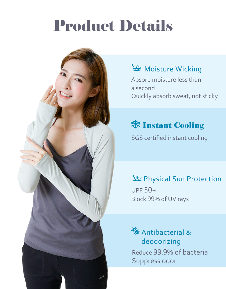 • SGS-certified Cooling sensation, Moisture wicking, Anti-bacterial