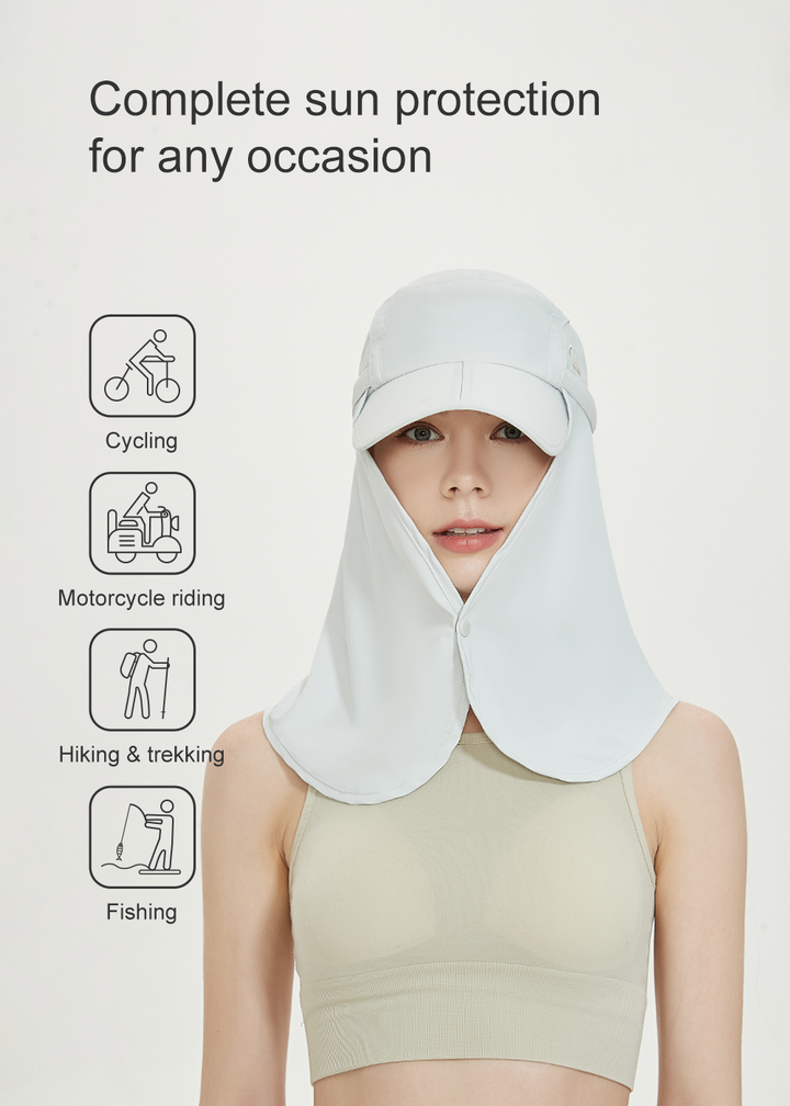 • With a 8cm brim at the front and generous 25cm protection at the back, meeting Cancer Council standards