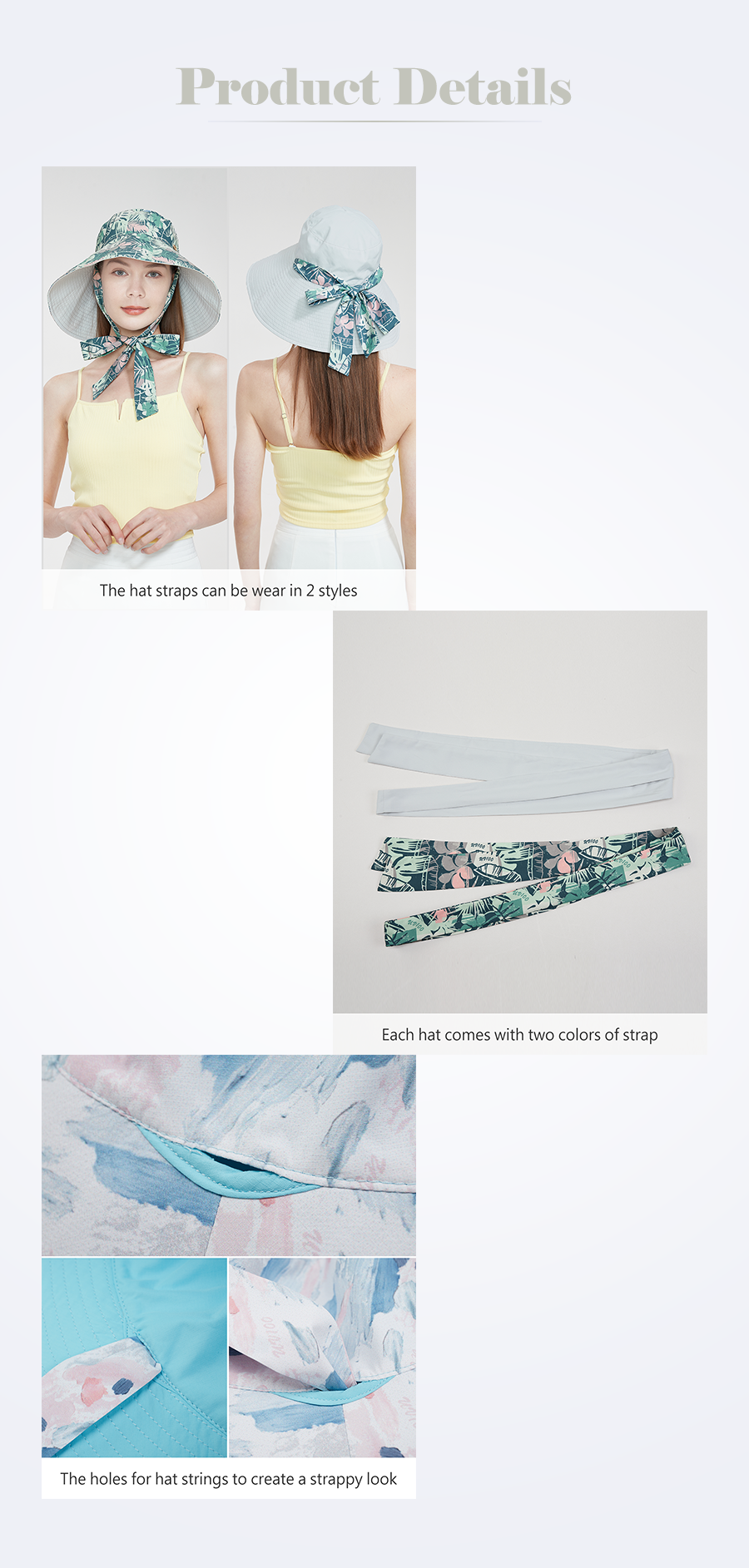 • Adjustable hat straps can be worn in two unique ways