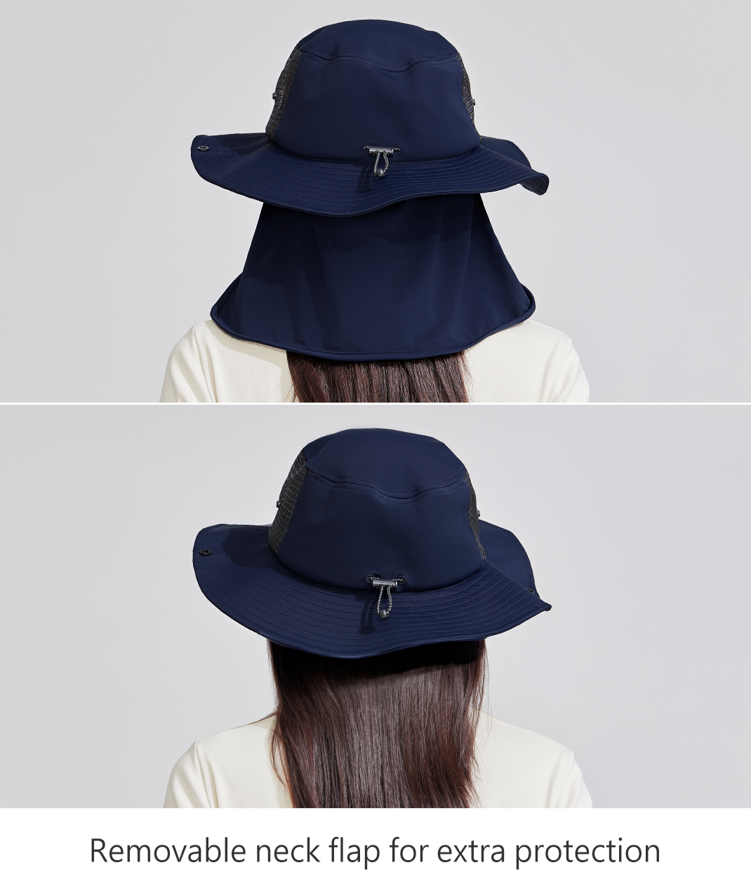 Introducing our UPF50+ Water Sports Hat, designed for everyone who loves the water! This unisex hat adds a touch of cool style with its unique and functional design, featuring a TTRI-certified cooling sensation to keep you refreshingly cool. The sturdy brim ensures a clear view, while side snap buttons offer two different styles for versatile wear. Its breathable design keeps you fresh and comfortable, even while splashing around. With a detachable neck flap for comprehensive sun protection, this lightweight and comfortable hat is perfect for those long afternoons out on the water. Stay cool, stylish, and protected all summer long!