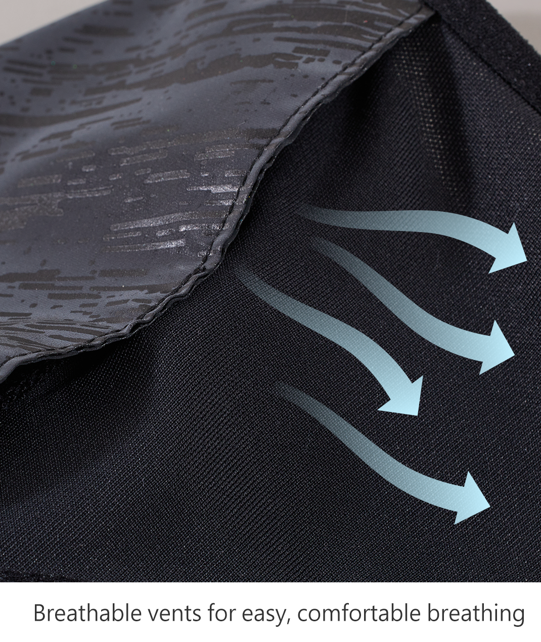Infused with street-style reflective patterned fabric for enhanced visibility at night, this face cover features a 3D contoured fit that suits all face shapes. Side ventilation holes keep you cool and comfortable during workouts—perfect for running, cycling, or any active lifestyle with a bold twist.