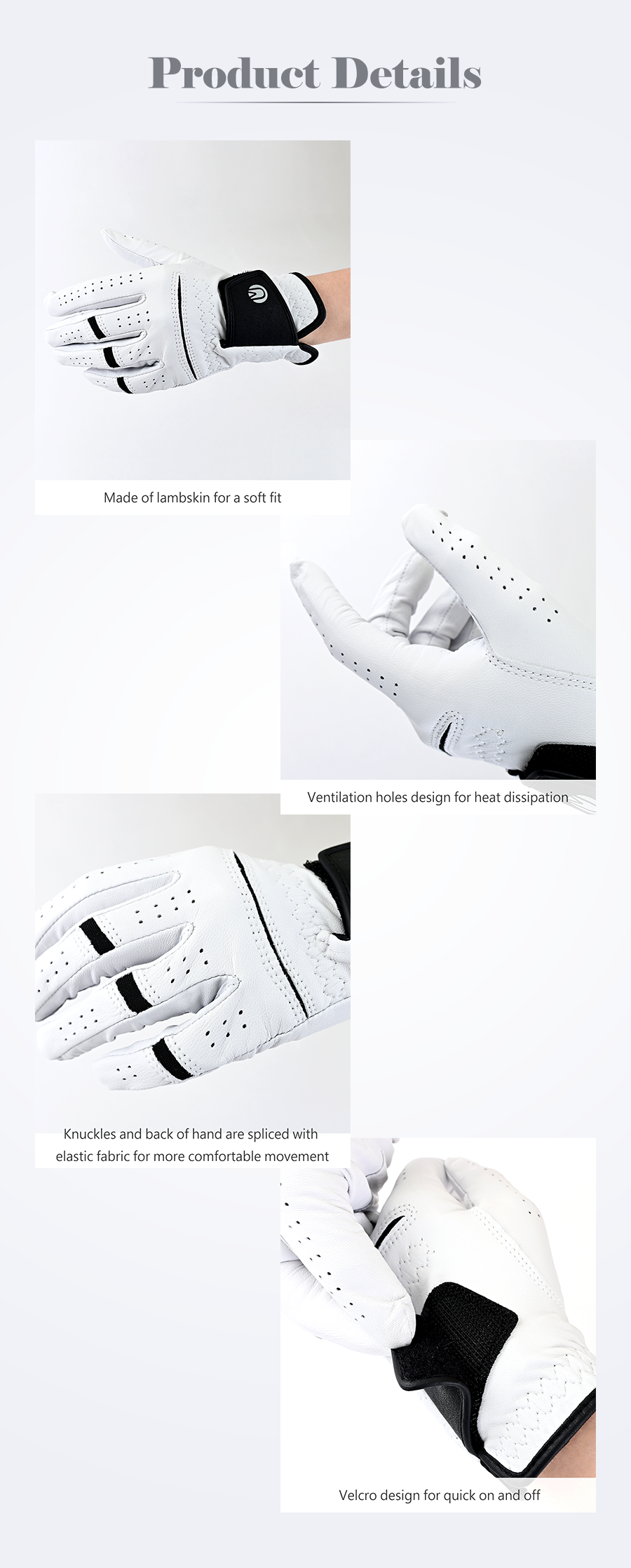 Introducing our Breathable Golf Gloves, ARPANSA certified with UPF50+ protection to block UVA and UVB rays. Made from soft lambskin, these gloves offer a luxurious fit and exceptional comfort. Ventilation holes enhance breathability and heat dissipation, while flexible elastic splicing at the knuckles and back ensures easy movement. The convenient Velcro strap allows for quick and effortless on/off. Perfect for a superior golfing experience.