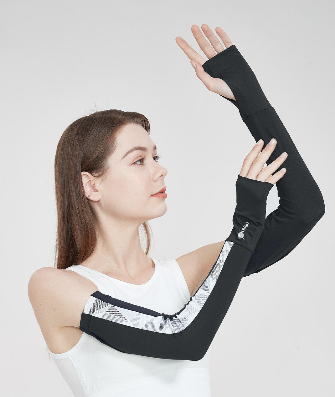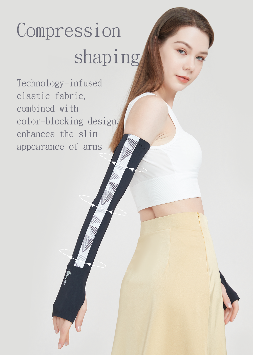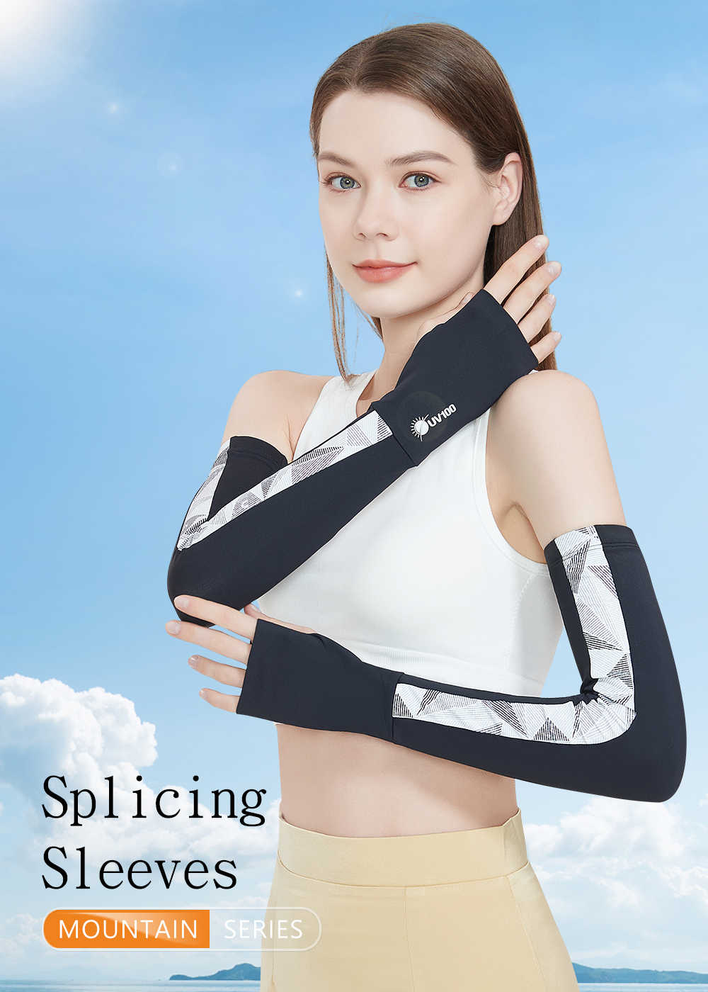 ARPANSA-certified UPF50+ Apex Splicing Sleeves, designed to block both UVA and UVB rays while offering a refreshing cooling sensation. These sleeves are antibacterial, odor-resistant, and moisture-wicking, keeping you fresh throughout the day. the soft, breathable fabric provides all-day comfort. these sleeves also offer a slimming appearance with compression shaping and a stylish color-blocking design. The four-way stretch provides lasting elasticity without tightness, making them ideal for daily wear, holidays, trekking, driving, and more.