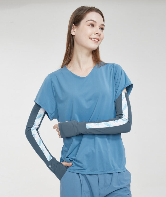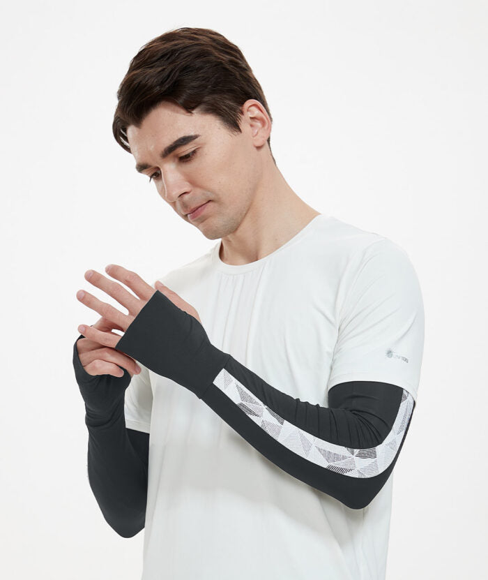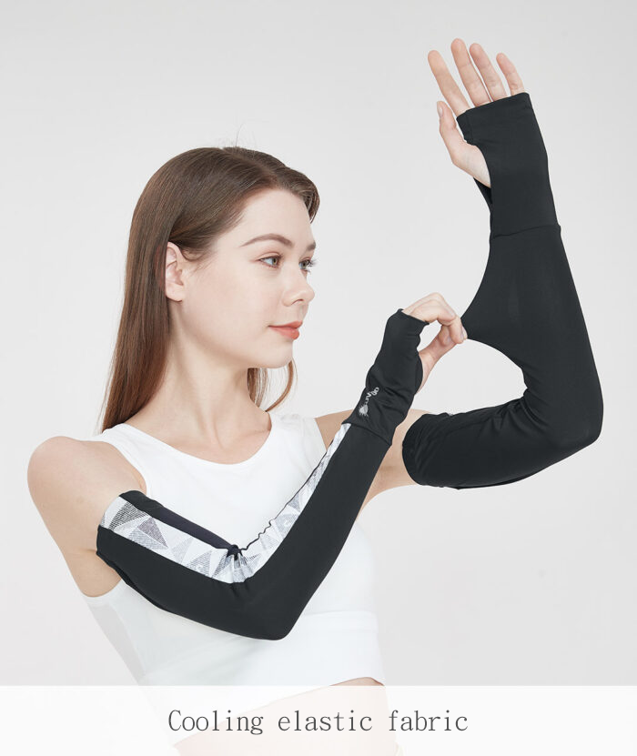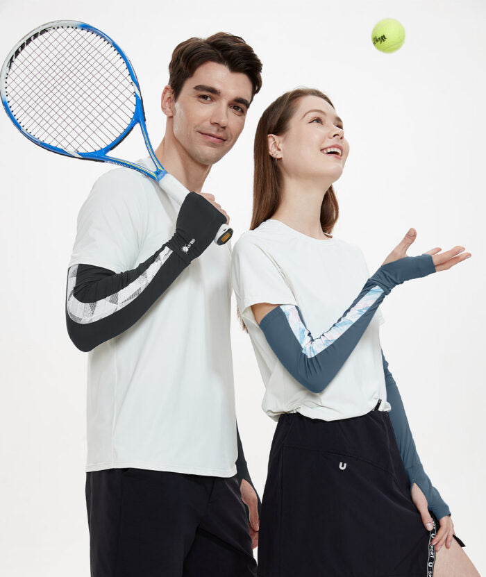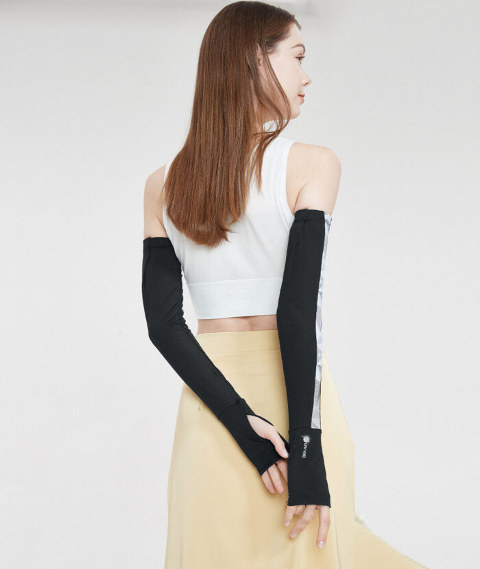 ARPANSA-certified UPF50+ Apex Splicing Sleeves, designed to block both UVA and UVB rays while offering a refreshing cooling sensation. These sleeves are antibacterial, odor-resistant, and moisture-wicking, keeping you fresh throughout the day. the soft, breathable fabric provides all-day comfort. these sleeves also offer a slimming appearance with compression shaping and a stylish color-blocking design. The four-way stretch provides lasting elasticity without tightness, making them ideal for daily wear, holidays, trekking, driving, and more.