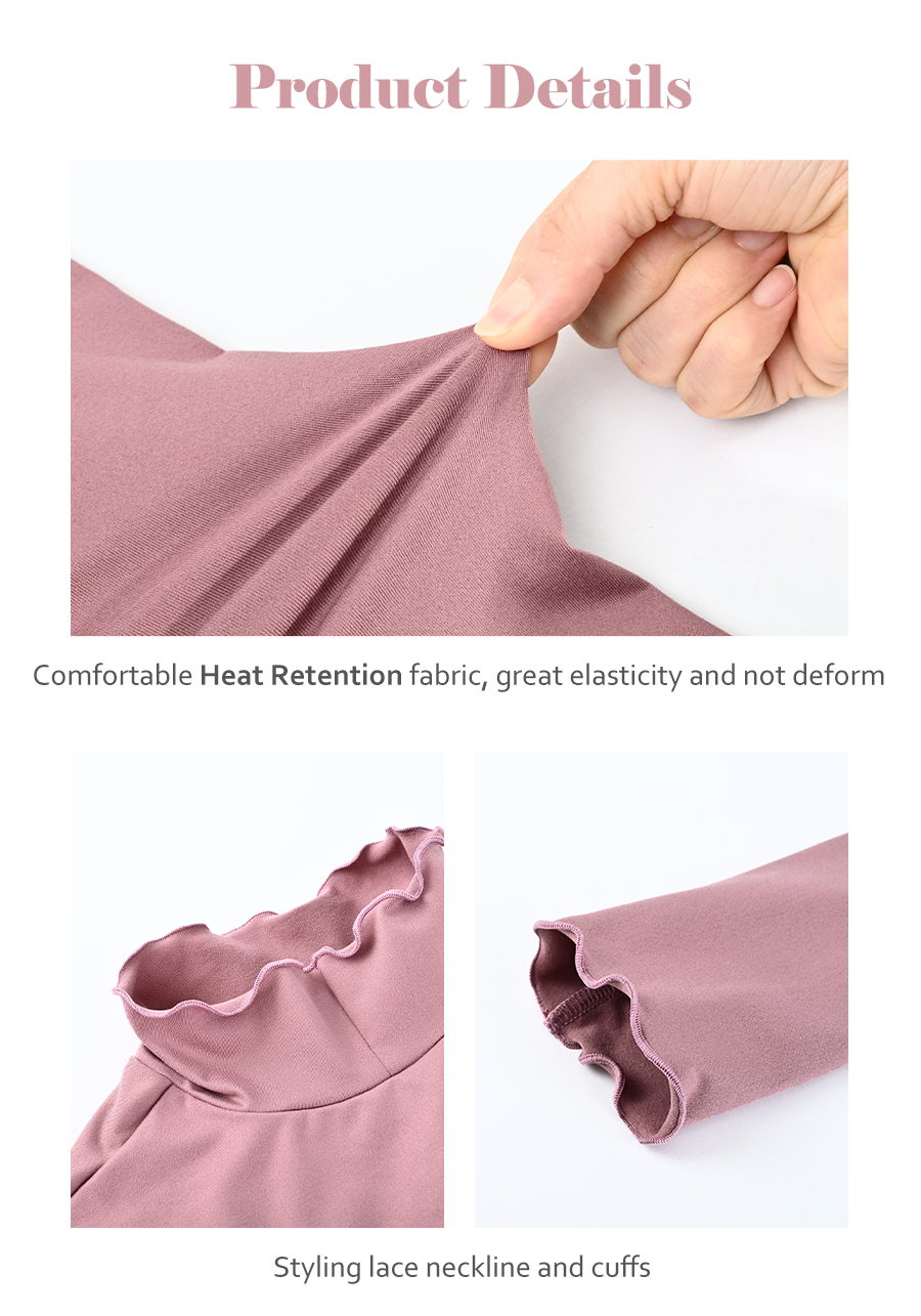 Heat Retention Collection: where innovation meets comfort. The advanced insulating hollow fiber paired with elastic yarn locks in heat and reduces heat loss, enhancing warmth by 3-4°C. Designed with a fine texture that blocks cold air, this lightweight, durable fabric offers exceptional thermal insulation. High-quality spandex ensures excellent stretch and shape retention, while the four-needle six-thread stitching provides a smooth, comfortable fit. Meeting Byreck moisture-wicking standards and free from harmful chemicals, it’s both eco-friendly and gentle on your skin. Ideal for layering through autumn and winter!