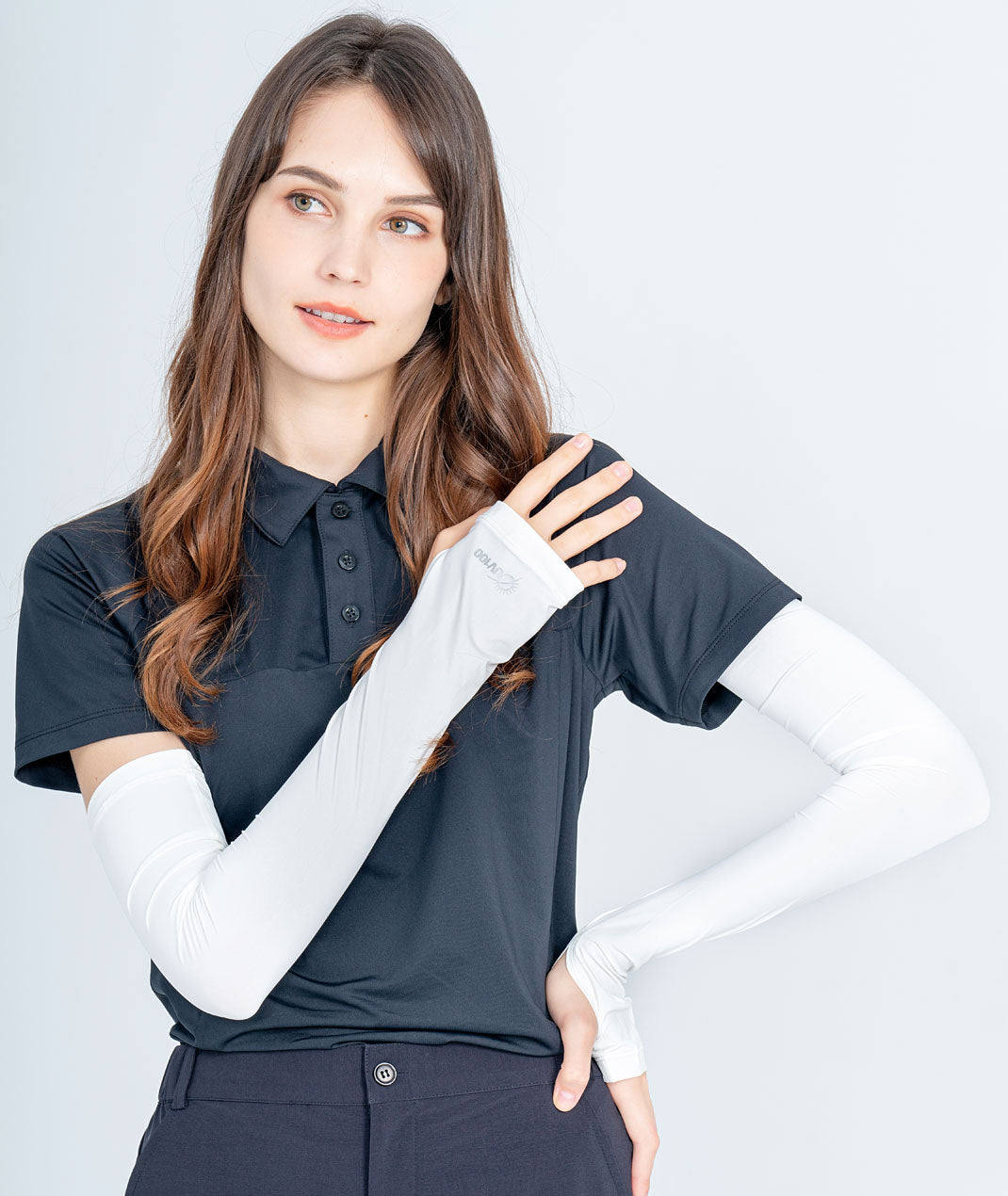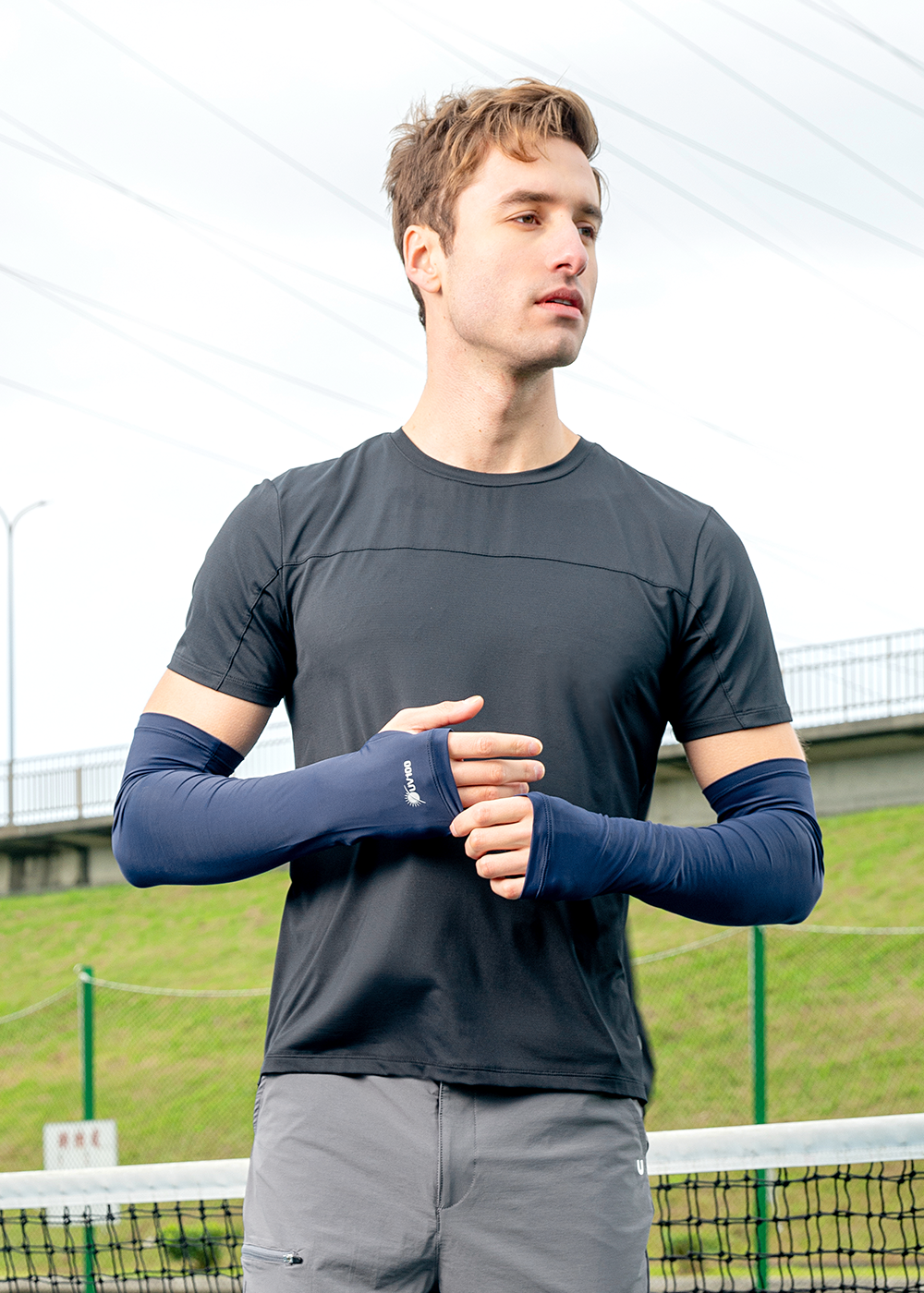 Introducing Apex Thumbhole Sleeves, ARPANSA certified with UPF50+ protection to effectively block both UVA and UVB rays. Enjoy a cooling sensation with antibacterial and odor-resistant properties, along with a refreshing 0.326 Q-max coolness index. The elastic fabric offers a comfortable, flexible fit, while the thumbhole design extends coverage to the back of your hands. With a comfortable elastic top for a snug, long-term fit, these sleeves are perfect for activities like running, driving, and gardening.