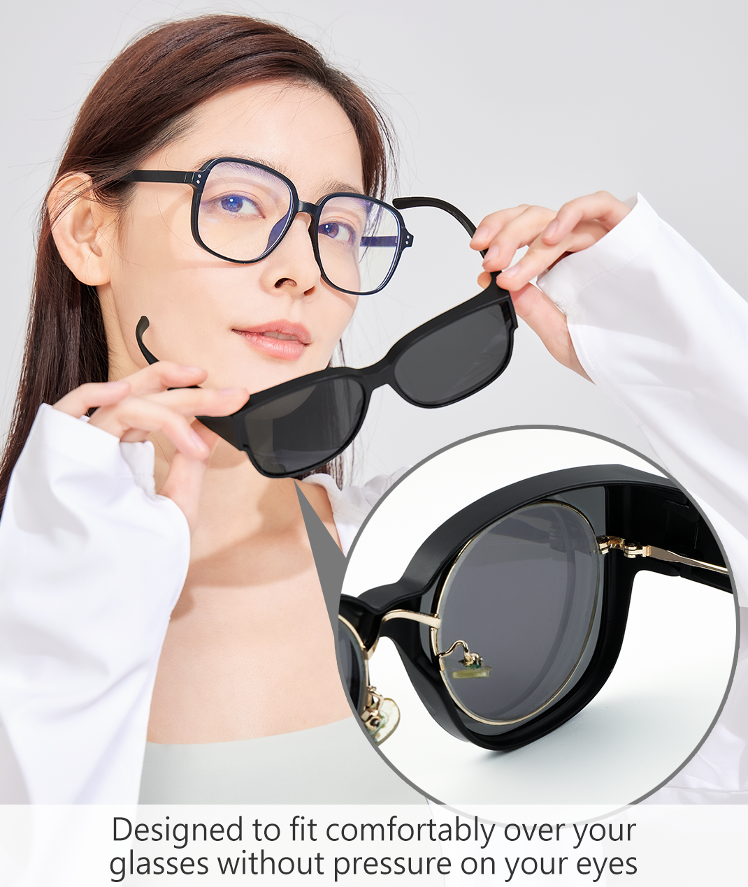 This practical clip-on design is easy to carry, providing UV-blocking lenses that protect your vision from harsh sunlight. With a stylish, refined frame, these sunglasses highlight your unique style, letting you shine confidently in the sun.
