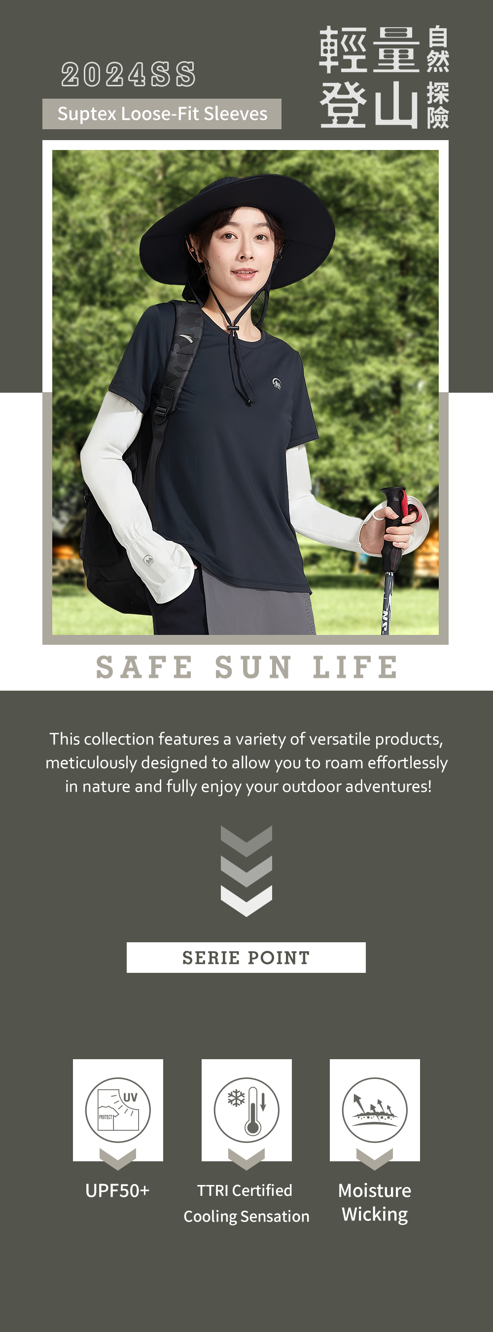 Suptex-Cool+ collection, featuring an ultra-thin, paper-like fabric that's just 0.07mm thick for an incredibly lightweight feel. With 15% more stretch flexibility thanks to exclusive technology, it offers permanent cooling and sun protection that lasts through every wash, free from harmful chemicals. Durable and soft, this collection is SGS certified for instant cooling and moisture-wicking, boasting a super cooling 0.343 Q-max index.