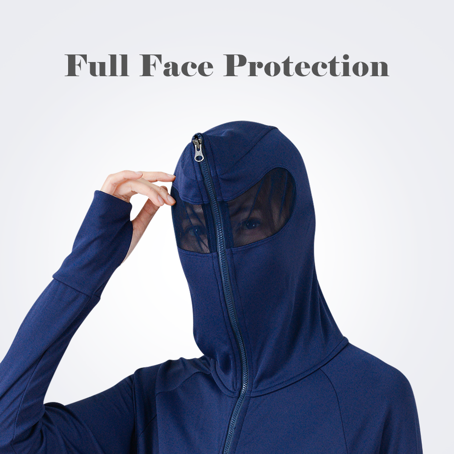 Our Apex Hooded Jacket Spliced Mesh is ARPANSA certified with a UPF50+ rating, blocking both UVA and UVB rays. It features cooling sensation and moisture-wicking, anti-bacterial properties, offering a 99.9% antibacterial effect. This jacket includes an electroplated zipper, zip pocket, and a hooded face mask for extra coverage. The thumbhole design covers the back of your hands, while the ponytail hole and flexible waist ensure a comfortable fit. With super stretch fabric, stay protected, cool, and stylish all day long!