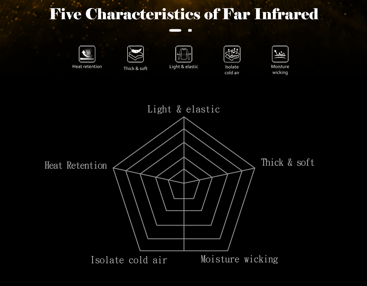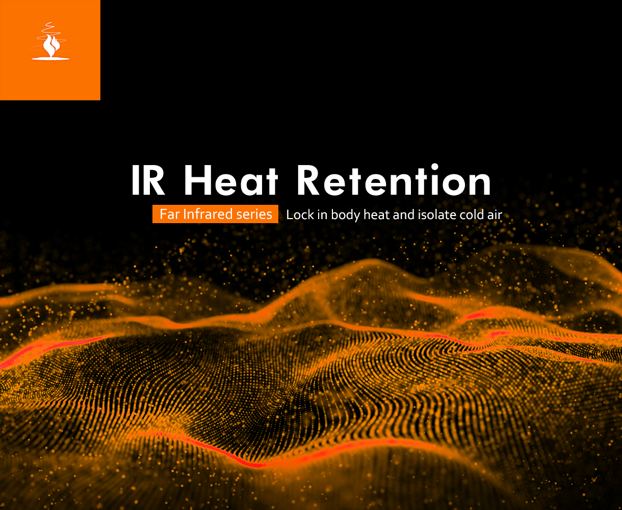 The IR Heat Retention Collection, designed to lock in body heat and raise your temperature by 6-8°C. Crafted with Far Infrared fiber, it effectively stores heat to keep you cozy. The fabric is soft, elastic, and lightweight, offering maximum comfort without the bulk. Hollow fibers trap heat while isolating cold, providing wool-like warmth that's soft and non-itchy. Plus, the Y-line section is moisture-proof and quick-drying, ensuring you stay dry and comfortable no matter the conditions.